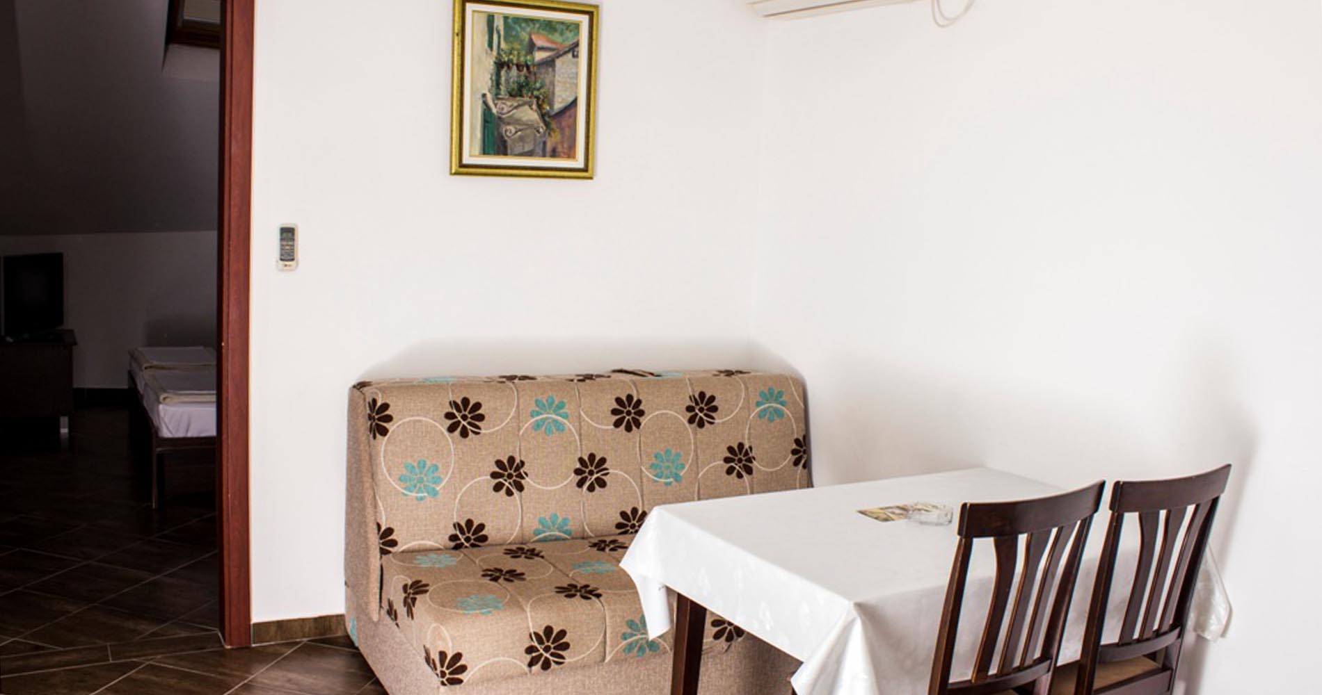 Apartman IV je jednosoban apartman za dvije osobe. Opremljen je kupatilom i odvojenom kuhinjom u kojoj se nalazi trpezarija.