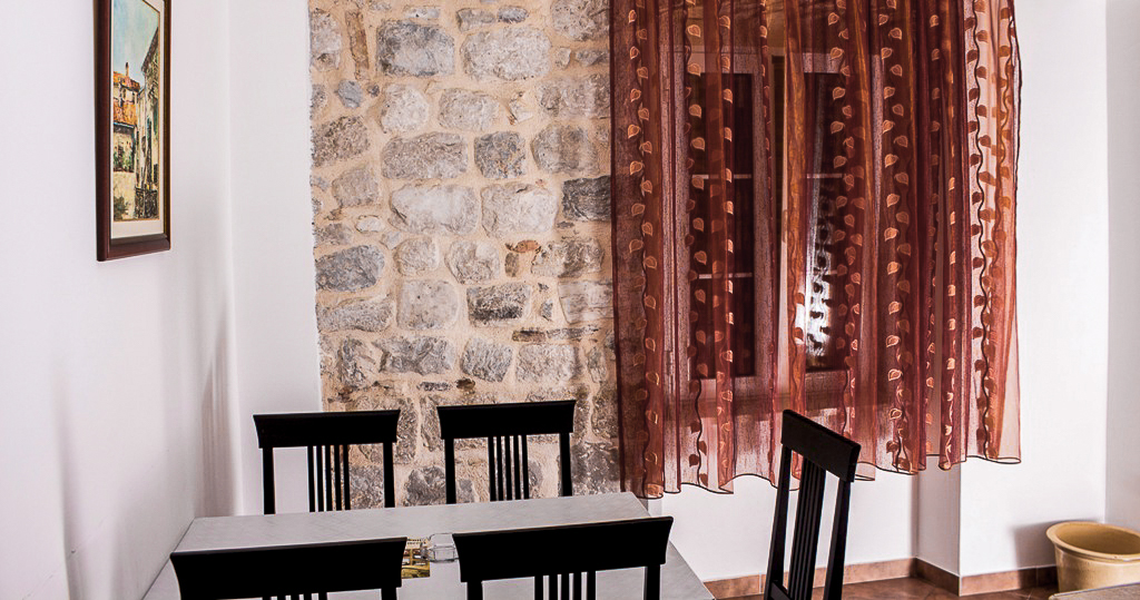 Kuhinja u apartmanu je u potpunosti opremljena i odvojena od spavaće sobe. U okviru kuhinje postoji i trpezarijski sto.