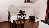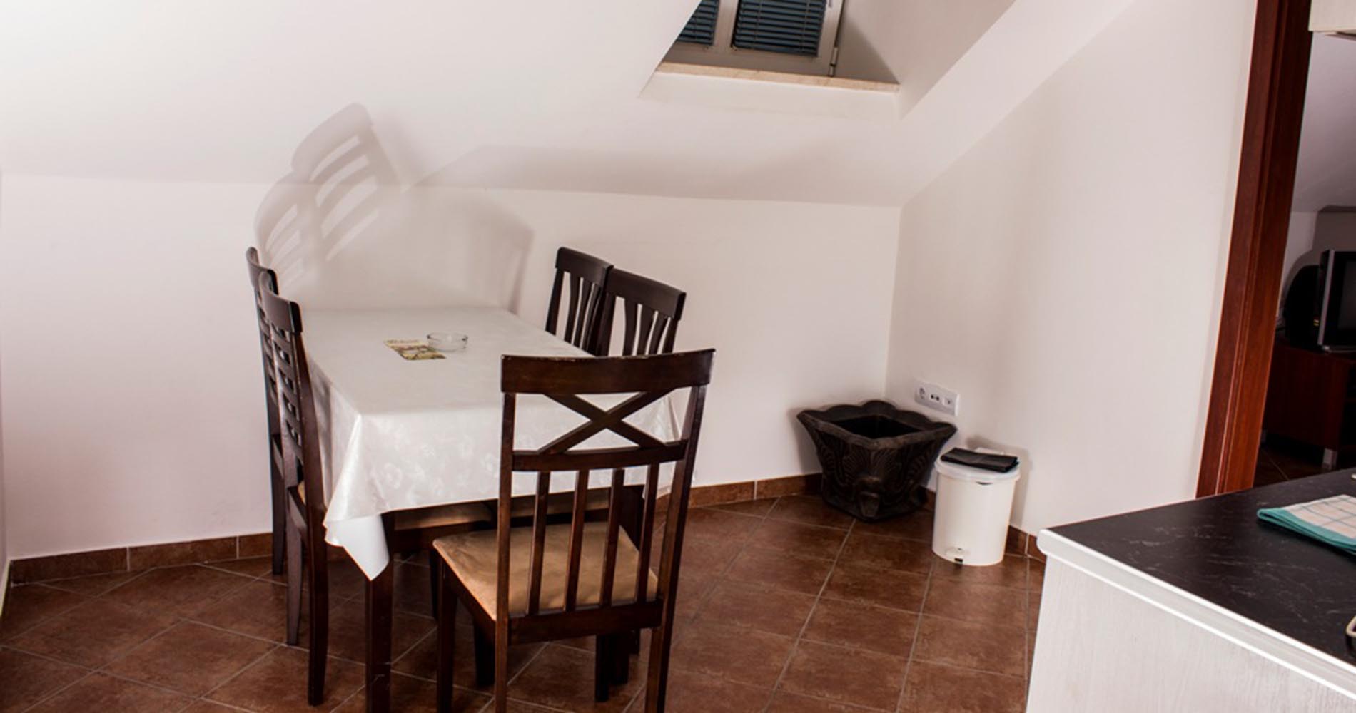 Kuhinja u apartmanu je odvojena od soba, sadrži sve elemente kao i trpezarijski sto.